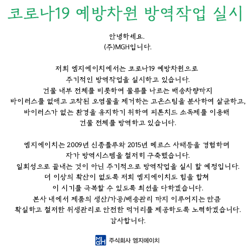[MGH공지] 코로나19 예방차원 방역작업 실시
